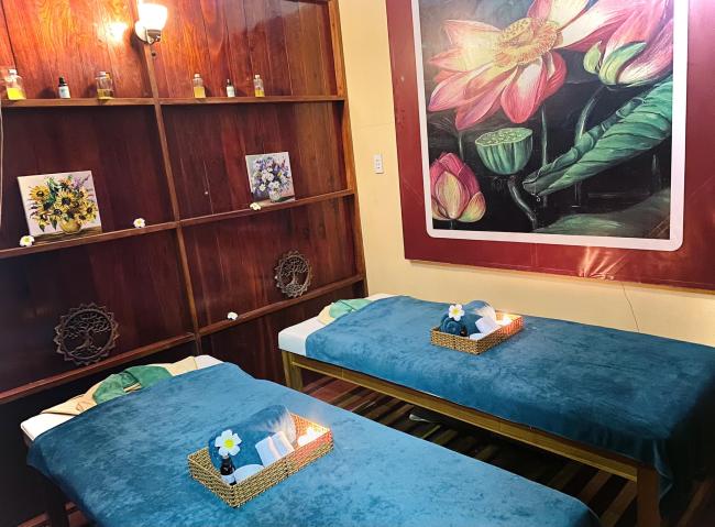 - VIETNAMESE TRADITIONAL MASSAGE: là sự kết hợp giữa kỹ thuật vỗ tay và đấm. Những động tác này sẽ tạo áp lực trực tiếp lên cơ và giúp giảm đau. Nhấn vào các điểm năng lượng là một phần rất quan trọng, giúp tăng cường tuần hoàn cần thiết để loại bỏ độc tố khỏi cơ thể.
